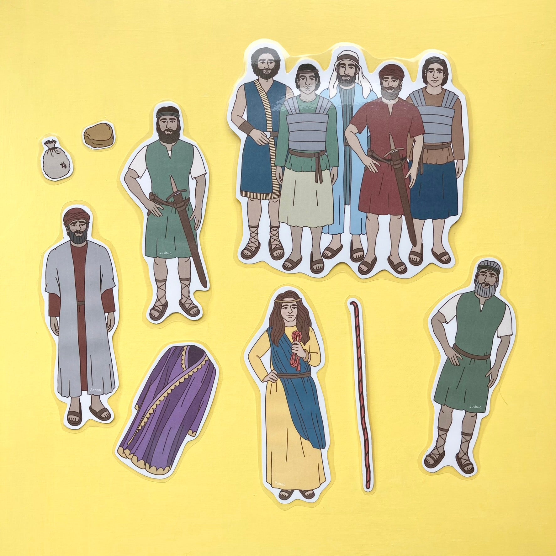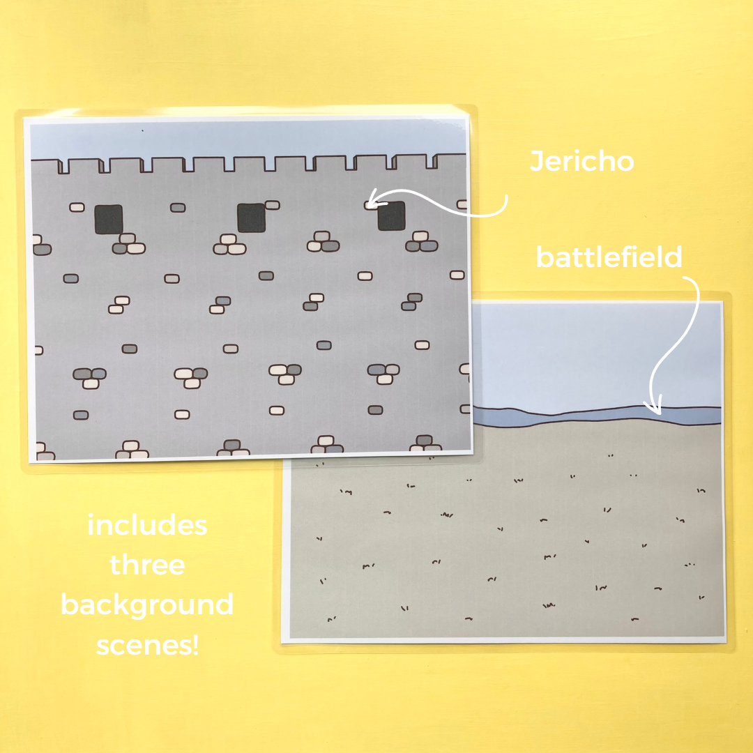 INCLUDED IN YOUR PURCHASE: You will receive (1) PDF that includes three background scenes, props, and illustrations of Joshua, the spies, Ruth, the army of Israel, priests, and Achan.