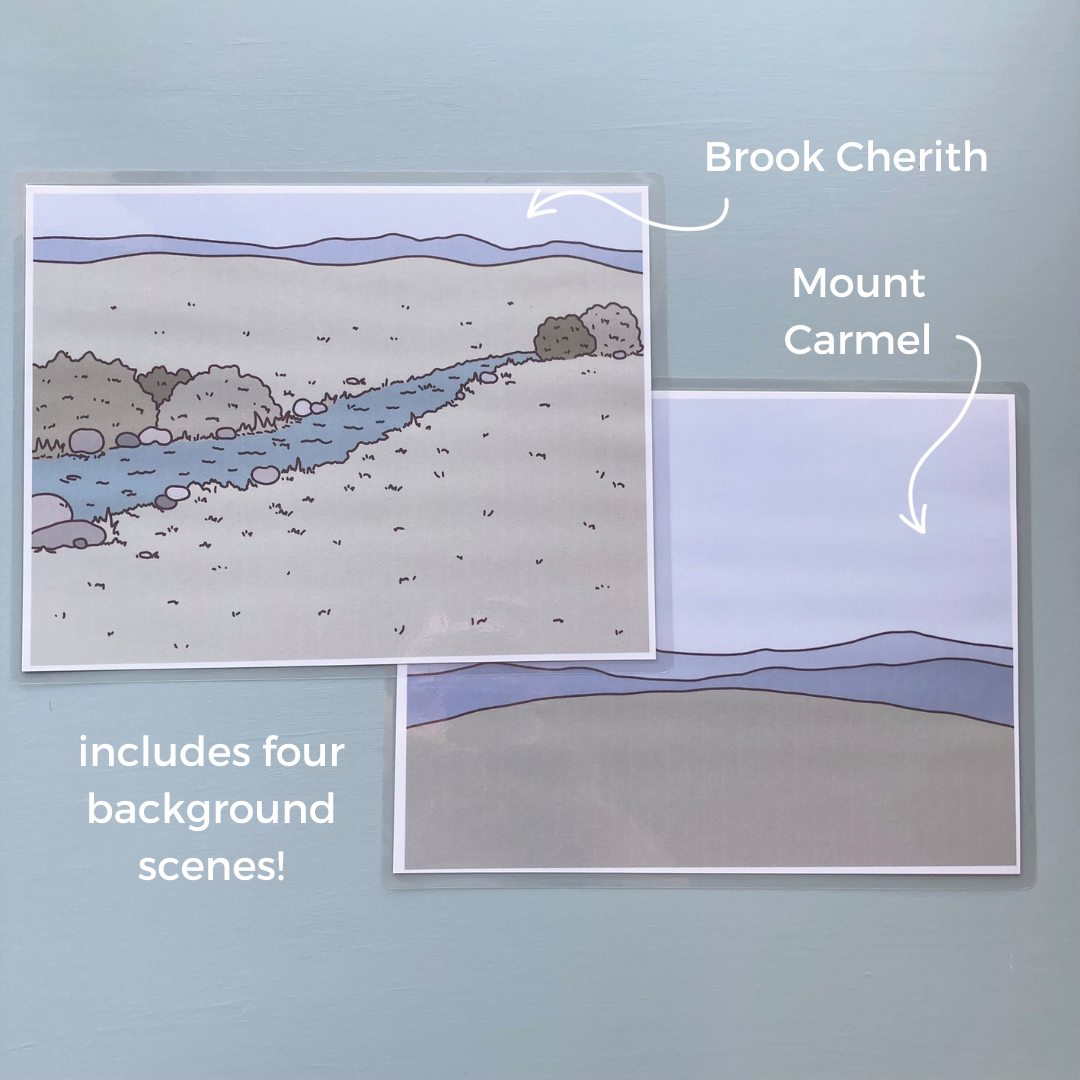 INCLUDED IN YOUR PURCHASE: You will receive (1) PDF that includes four background scenes, props, and illustrations of Elijah, Elisha, Ahab, Jezebel, Naaman, and more.