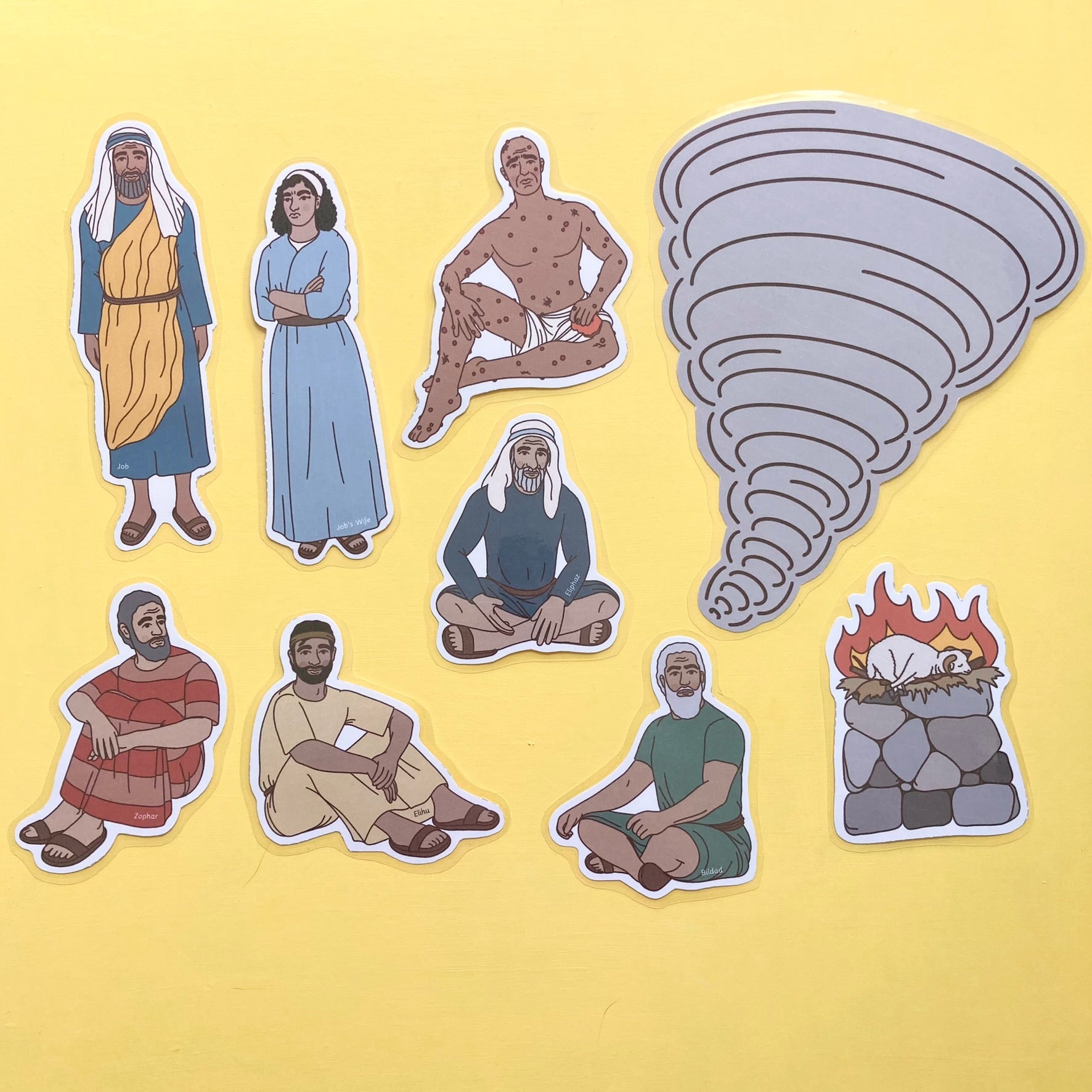 INCLUDED IN YOUR PURCHASE: You will receive (1) PDF that includes one background scene, props, and illustrations of Job, Job's wife, Eliphaz, Bildad, Zophar, and Elihu.