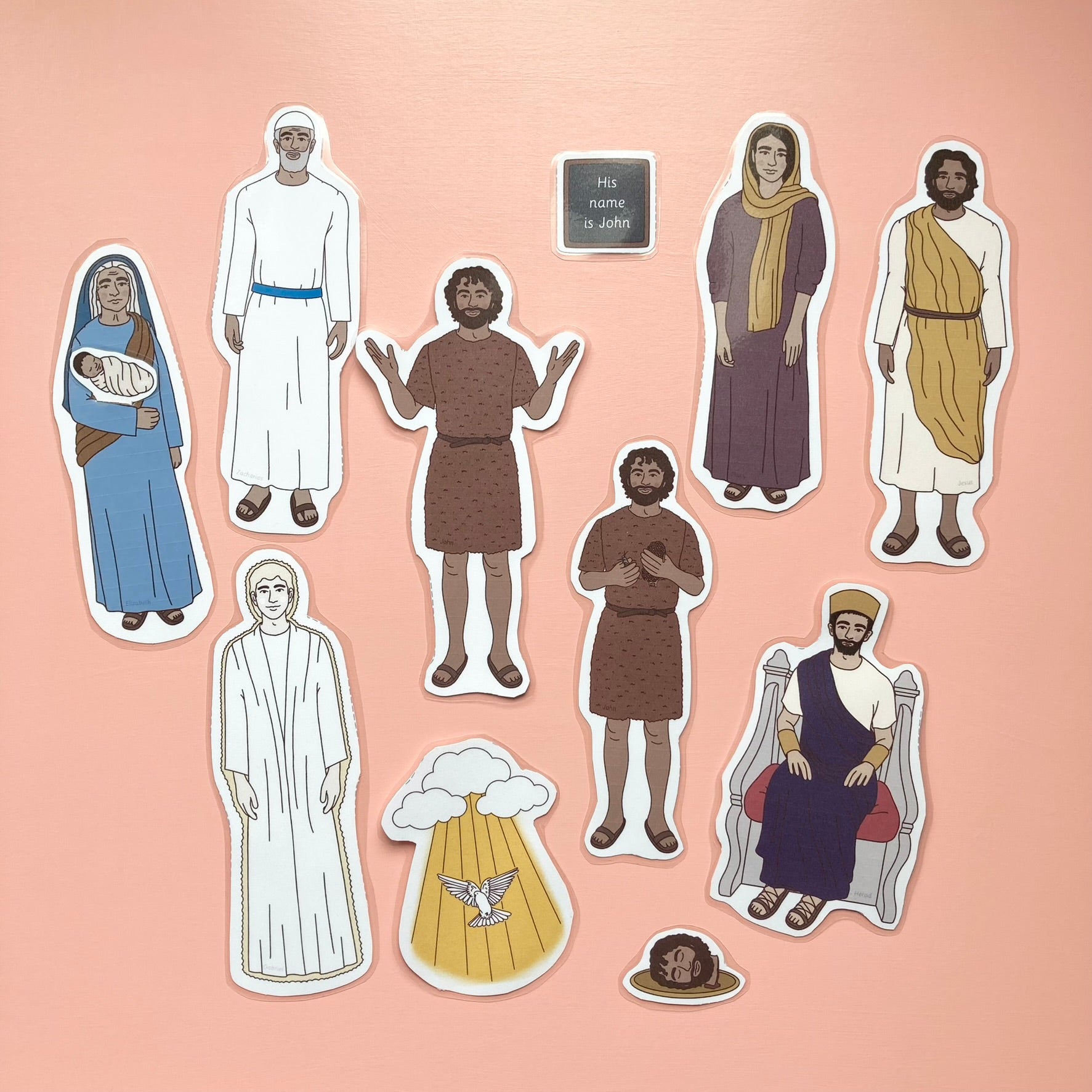 INCLUDED IN YOUR PURCHASE: You will receive (1) PDF that includes two background scenes, props, and illustrations of John, Gabriel, Zacharias, Elizabeth, Mary, Jesus, and Herod.